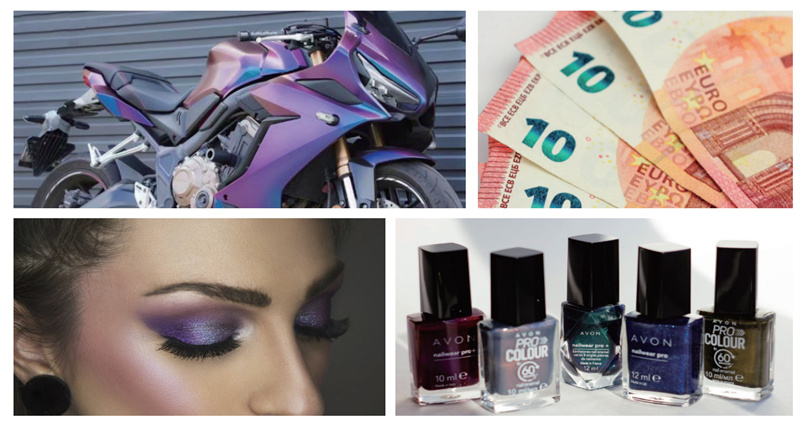 光學(xué)變色材料,基于物理光學(xué)原理展現(xiàn)奇妙色彩,安全環(huán)保且永不褪色。旭陽(yáng)新材生產(chǎn)的高亮實(shí)色系列高亮度與強(qiáng)遮蓋力兼?zhèn)?,色彩奪目;透明彩色系列高亮度和高透明性并存。二者都有強(qiáng)烈的隨角異色特性和獨(dú)特金屬閃爍效果,能全色域覆蓋紅、橙、黃、綠、青、盟、紫、金、銀等,共30余款顏色。應(yīng)用于防偽印刷、化妝品、汽車改色、皮革鞋材等眾多行業(yè)。